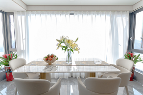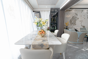 客廳、餐廳廚房是室內空間里非常重要的區域,同時也占據了室內的大部分空間。業主想要一個舒適大氣的客餐廳,希望設計師能在作品空間中展現的靈活性和延伸感,通過應用線條的變化,色彩變化及不同筆法表現畫面的虛實與美感。女主人對麻將情有獨鐘,想擁有自己的麻將室。